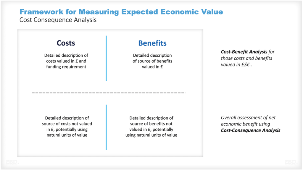 And not all outcomes are benefits. Longer life may come at the cost of impaired quality of life. Centralising a service may make access difficult for those who live far away.